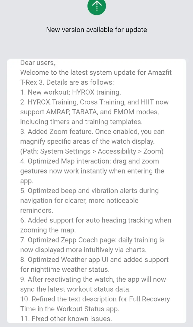 Amazfit implementează progresiv o actualizare semnificativă a firmware-ului, versiune 3.9.4.4, la ei Amazfit T-Rex 3 ceas inteligent serie. Această actualizare introduce o serie de funcții noi și optimizări cruciale, care urmărește să îmbunătățească experiența utilizatorului, atât pentru pasionații de fitness, cât și pentru utilizatorii obișnuiți.
