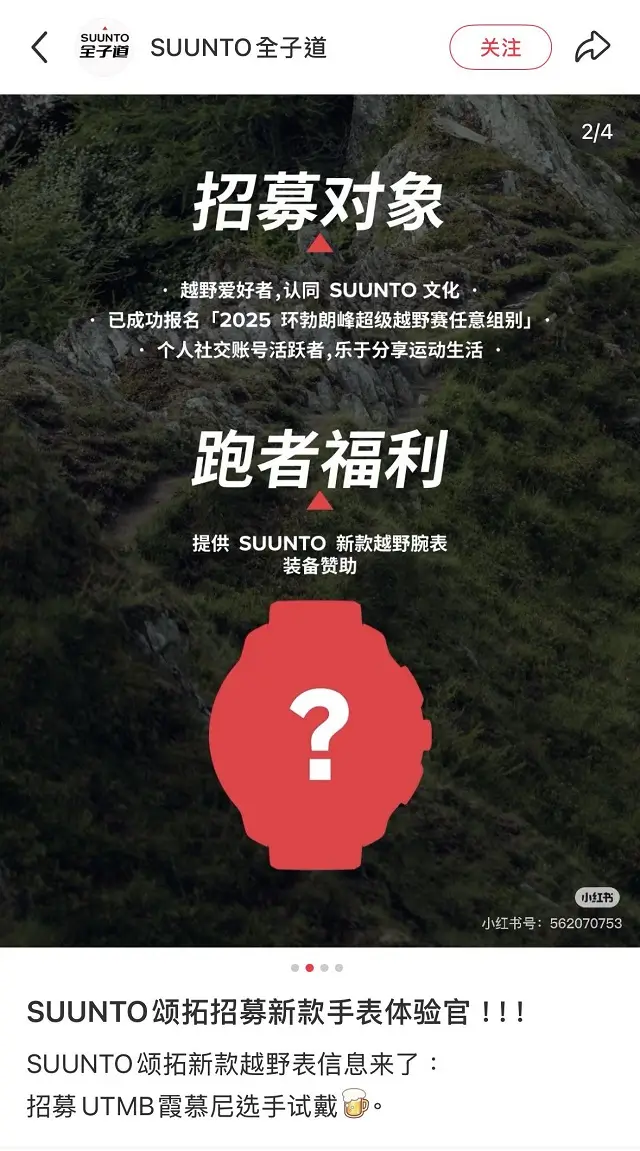 Rather than a typical marketing launch, Suunto’s approach is notably low-key. The company has posted an invitation on Chinese social media platforms, seeking runners who are competing in the 2025 UTMB and are active on social media. Those selected will have the opportunity to wear a “new off-road watch” and will receive gear sponsorship.