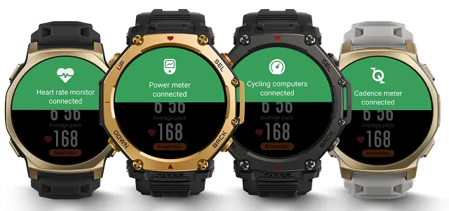 ที-เร็กซ์ 3 Pro ไม่ใช่แค่การอัพเกรดภายในเท่านั้น; นอกจากนี้ยังมีโครงสร้างที่ทนทานยิ่งขึ้นและจอแสดงผลที่สว่างยิ่งขึ้น. ยิ่งเล็ก. 44 รุ่น mm มีหน้าจอ AMOLED ขนาด 1.32 นิ้ว, ในขณะที่ใหญ่กว่า 48 รุ่น mm มีหน้าจอ AMOLED ขนาด 1.50 นิ้ว. ทั้งสองรุ่นมีความสว่างสูงสุดที่น่าประทับใจที่ 3,000 จู้จี้จุกจิก, a significant jump from the T-Rex 3’s 2,000 จู้จี้จุกจิก.